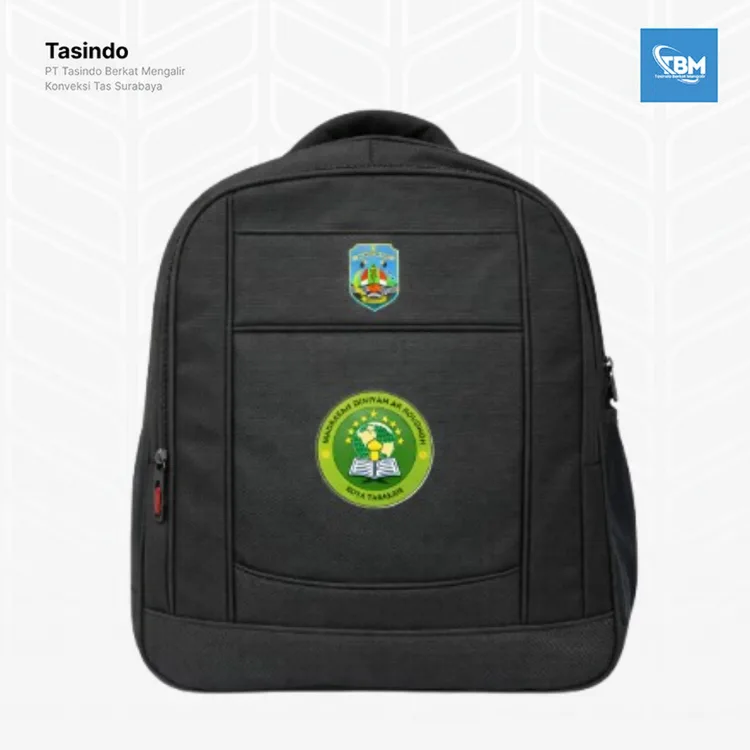 Tas ransel custom ini dirancang dengan tampilan formal, profesional, dan kokoh, sangat cocok digunakan untuk kebutuhan instansi, sekolah, dinas, pelatihan, maupun kegiatan resmi. Warna hitam solid memberikan kesan elegan dan netral, mudah dipadukan dengan berbagai identitas lembaga.